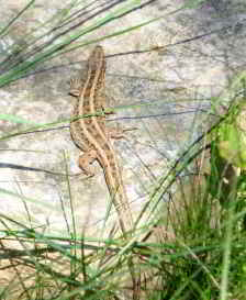 waren freudig überrascht über eine kecke Eidechse, die sich in der