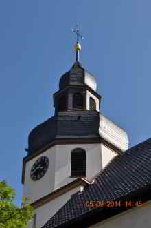Kirchplatz unter dem ganz frisch fertiggestellten Kirchturm der