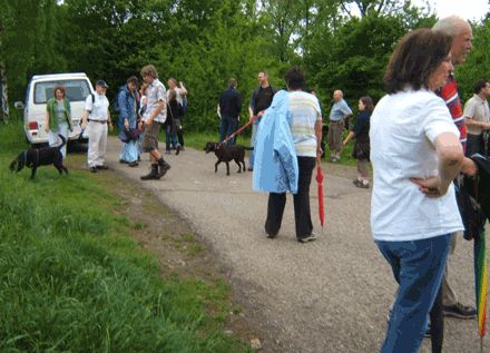 Anzahl von ca. 40 Leuten, die sich über die Froschwaide, Unterführung